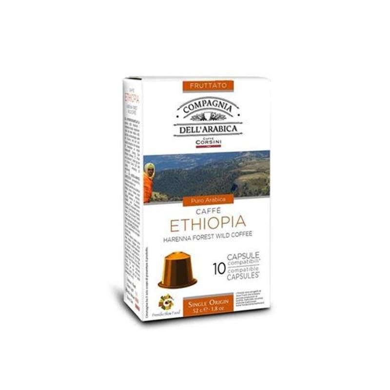 Kapsle CORSINI ETHIOPIA HARENNA FOREST WILD COFFEE 10 x 5,2 g Pravou italskou kávu si můžete nyní připravit a vychutnat i z pohodlí Vašeho domova. Kávu Corsini si díky její skvělé, intenzivní a silně návykové chuti oblíbí každý milovník kvalitní kávy. Na území lesa Harenna, který se nachází mezi horami nádherného př...