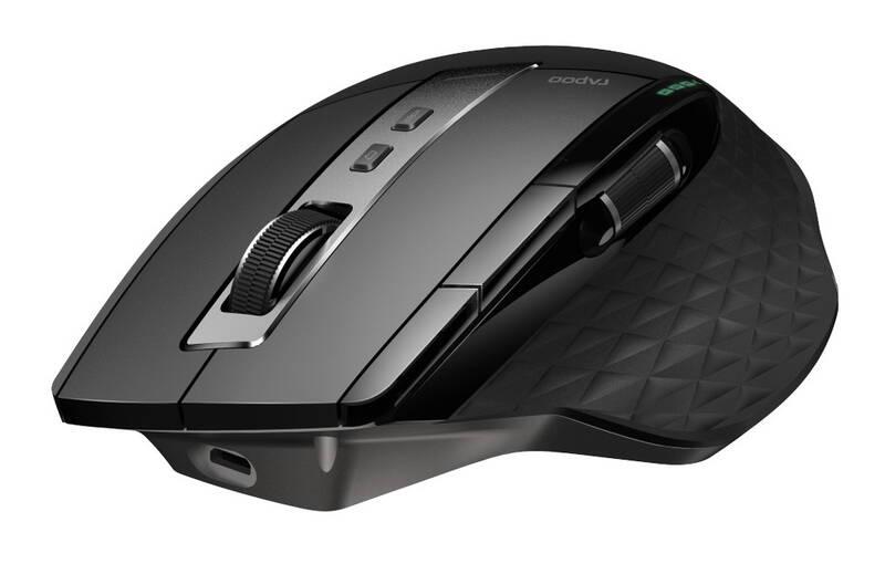 Rapoo MT750S vícerežimová bezdrátová optická myš, bezdrátová technologie: 2,4 GHz, Bluetooth 3.0 a 4.0, okamžité přepnutí mezi 4 připojenými zařízeními (automatické párování), dosah až 10 metrů a pokrytí 360 °, vysoce výkonná laserová technologie s nastavitelným rozlišením do 3200 DPI, dobíjecí akumulátor.